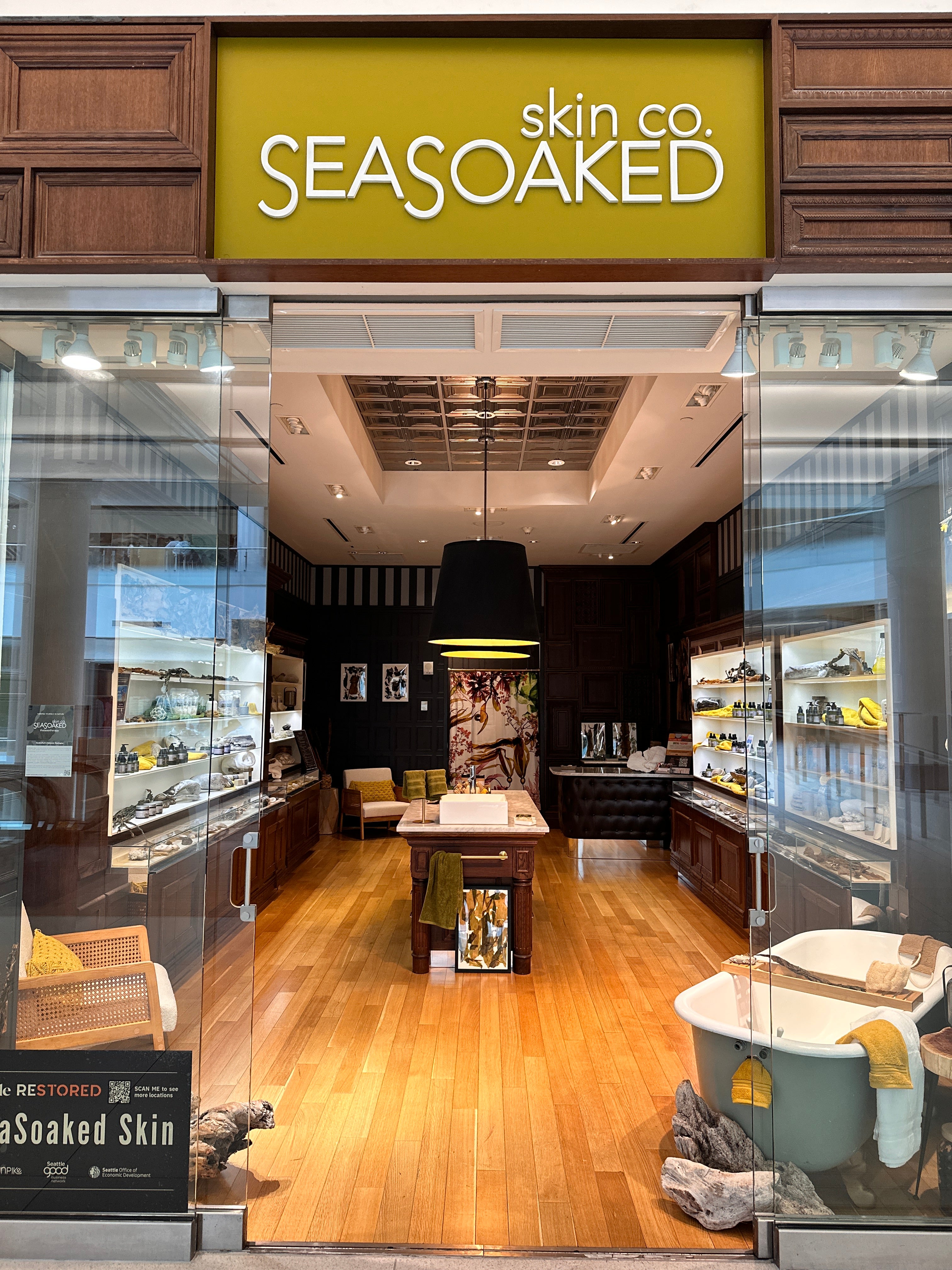 "I’ve always pondered about a SeaSoaked Skin Retail Shop and how fun it would be to set one up one day and then found myself within this amazing opportunity to dip my toes in! Downtown Seattle has been a place where I have lived and played for many, many years and am so exciting to showcase my small business with locals and non-locals alike. I am so grateful to the Seattle Restored team for such an amazing opportunity. It is such a fantastic program doing incredible things for the city of Seattle as well as small businesses just like SeaSoaked Skin! We hope that if you’re in the area, that you'll pop into Pacific Place and visit us for some sea kelp self-care goodies!