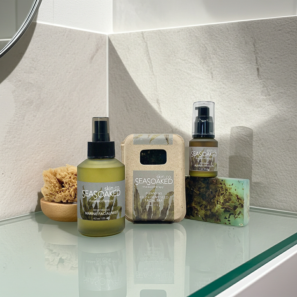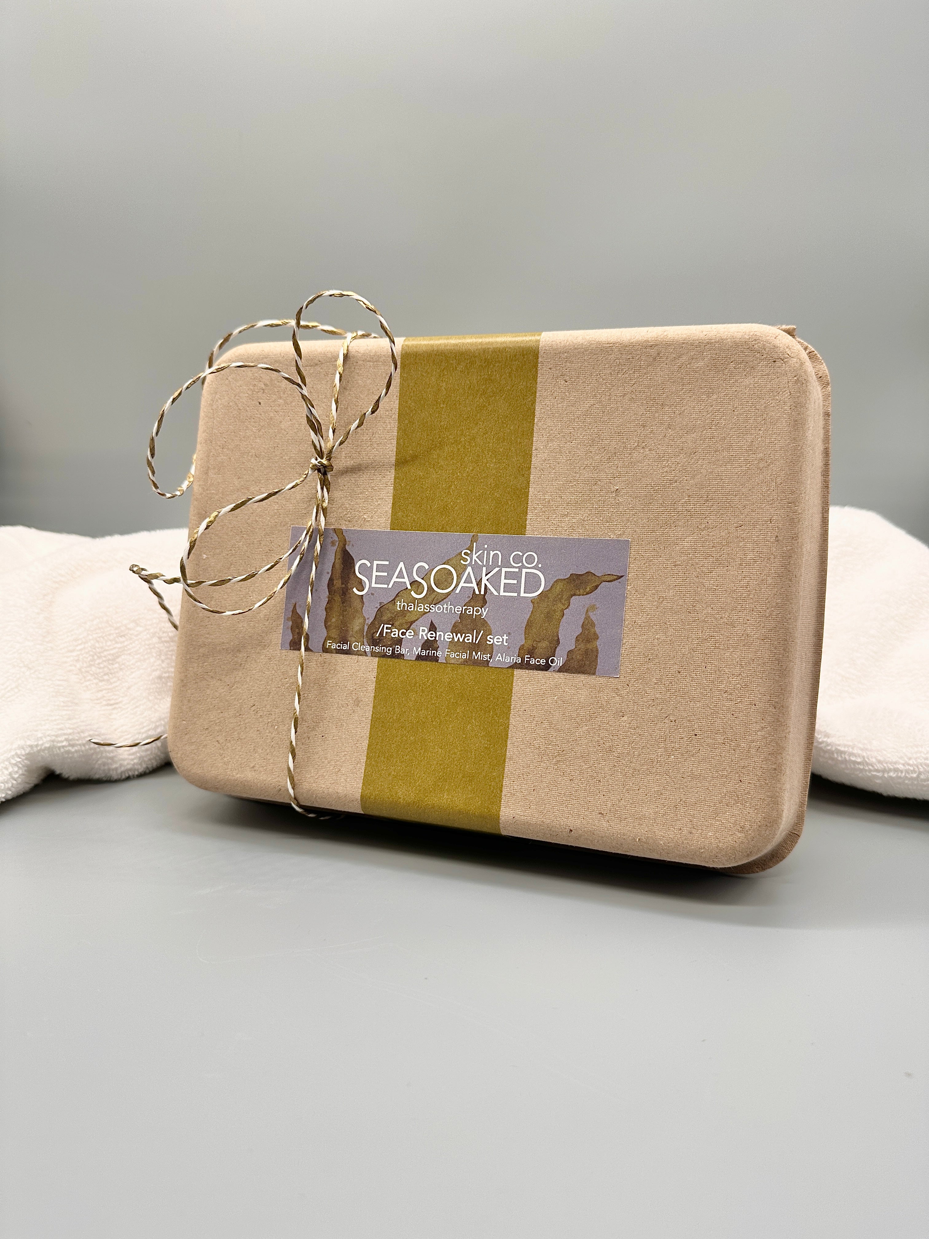 This beautiful eco-luxurious trifecta includes a full size of our Cleansing Facial Bar, Restorative Marine Facial Mist and the infamous liquid-gold, Refining Alaria Face Oil. A popular choice for the person who takes self-care to a whole new level.